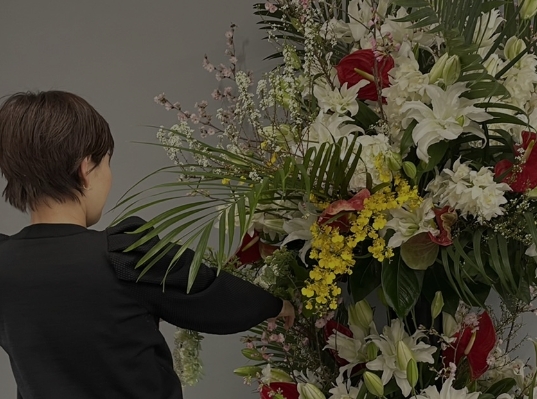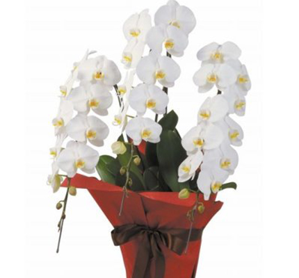 お祝いの花として大変人気です。おかげさまでお客様からも喜びの声を多く頂いております。背丈・輪数共にあるためスタンダードなものと比べてより豪華な印象となります