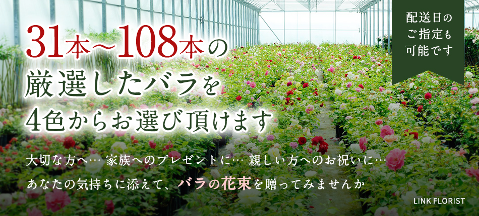 リンクフローリストのバラは入荷前から花束にするまで全ての過程を大切にしお客様にお届けいたします。