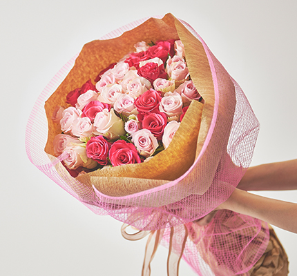 経験豊富なスタッフがご用意したバラの花束をご指定の場所までお届けしております。人気の赤いバラをはじめ、ピンク・黄色・白の4色のバラから花束をお作りいたします。