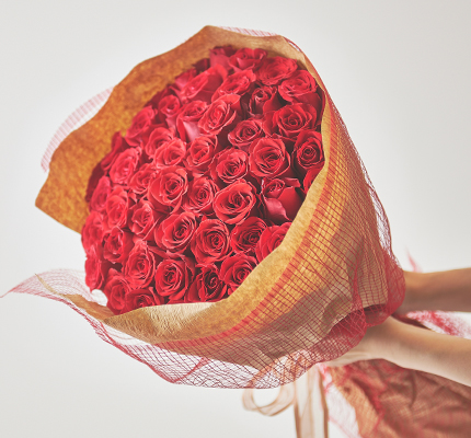 108本のバラの花束には「10と8=永遠」永遠の愛を誓う意味があります。心に残るプロポーズの演出に大人気です。