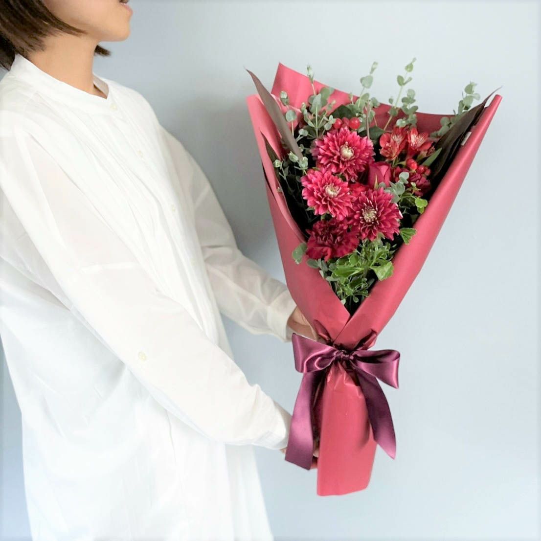 経験豊富なスタッフがご用意したバラの花束をご指定の場所までお届けしております。人気の赤いバラをはじめ、ピンク・黄色・白の4色のバラから花束をお作りいたします。