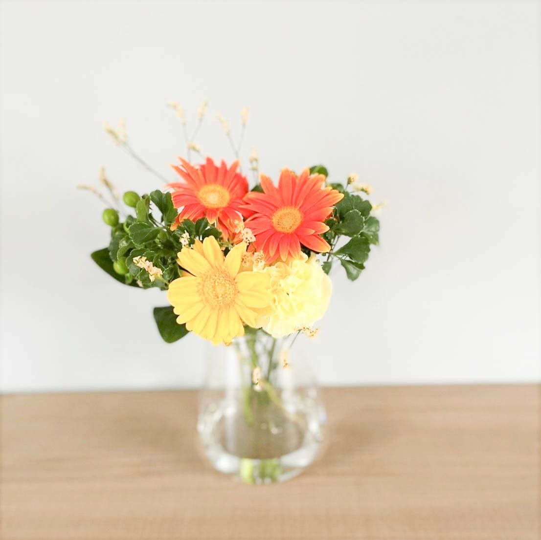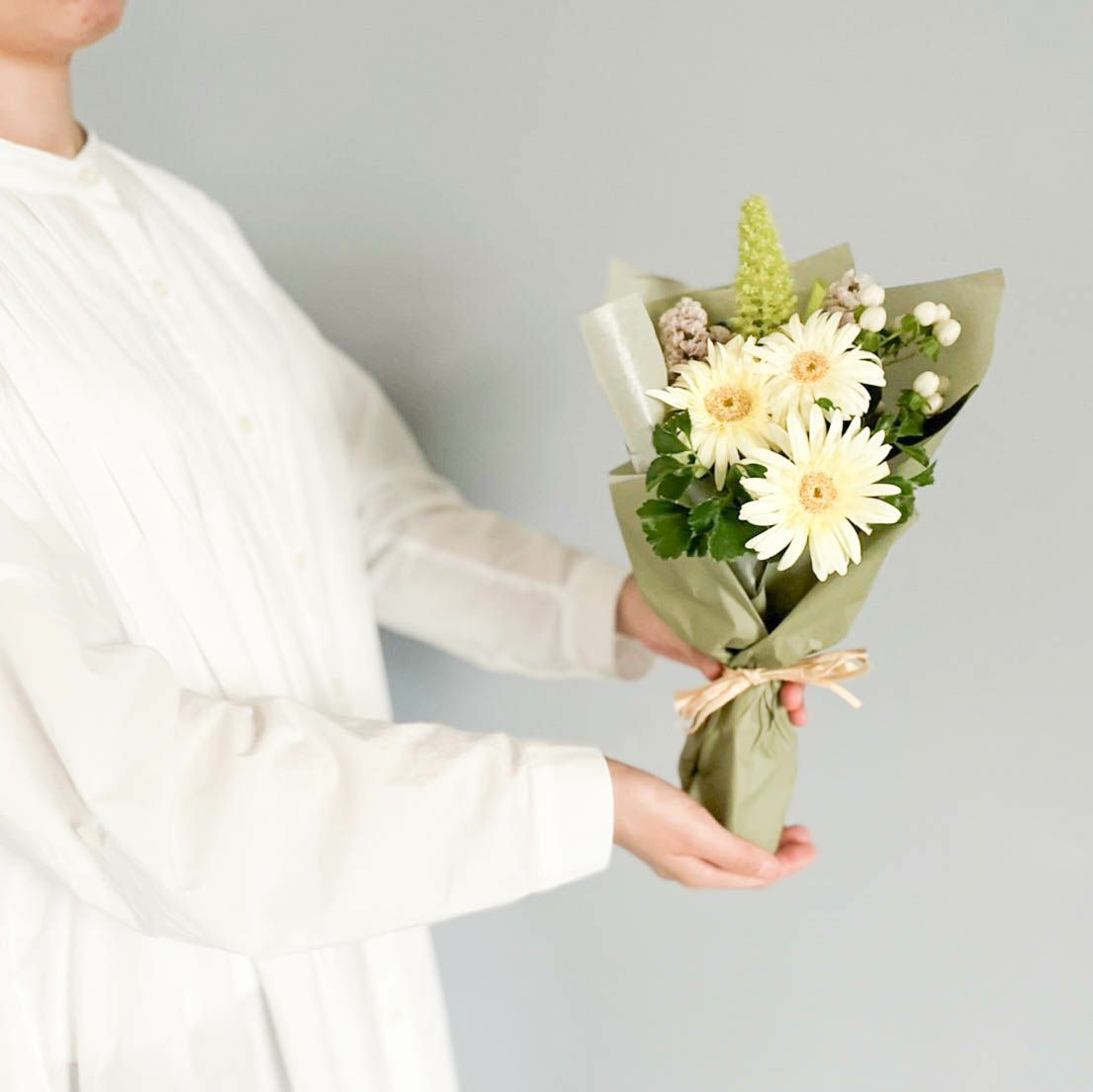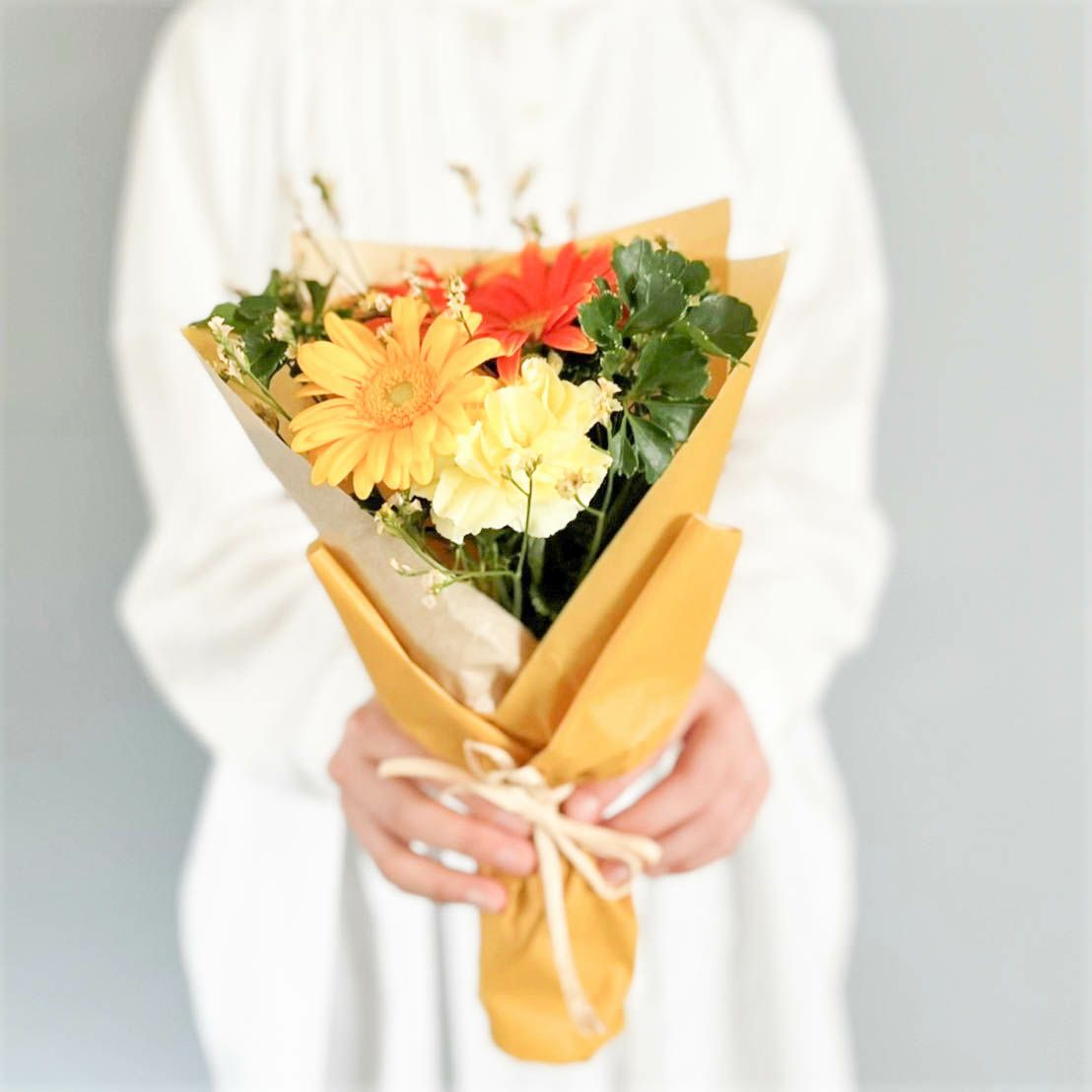 花束はラッピングしてお包みしたお花束を梱包しております。アレンジメントはセロハンで包装しております。ご到着の段ボールから取り出して、すぐにご利用頂ける状態になっております。