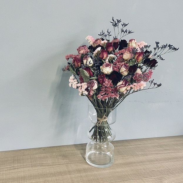 ※ドライフラワーは大変繊細な商品です。出荷の際は商品チェックを行い、厳重な注意を払い梱包出荷しておりますが、配送中の強い衝撃などで花びらが多少散ってしまうこともございます。その点はご了承くださいませ。