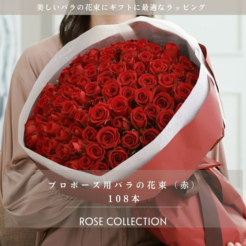 108本のバラの花束には「結婚してください」という意味が込められてます。108が「永遠(とわ)」と読める語呂合わせから由来しております。プロポーズの薔薇の花束は当店でも1番人気で、永遠の愛を誓うプロポーズに圧倒的おすすめです。