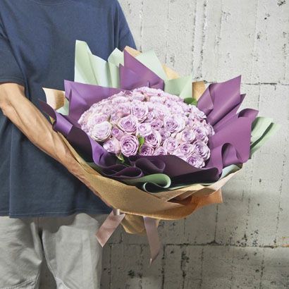 紫のバラを贅沢に使用! 紫のバラの花束