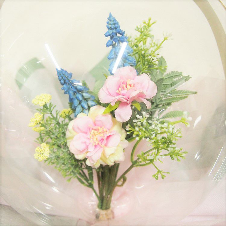 透明度の高いバルーンにアーティフィシャルフラワーをアレンジしました。