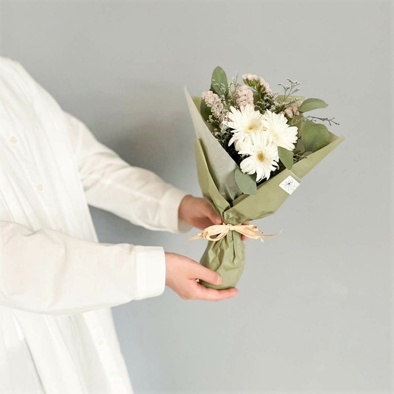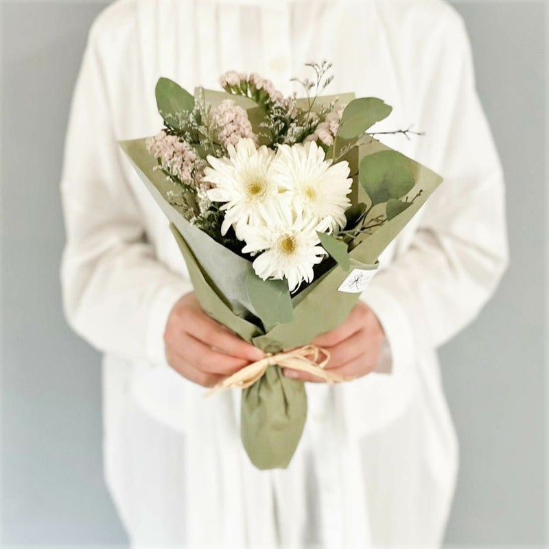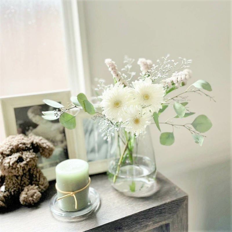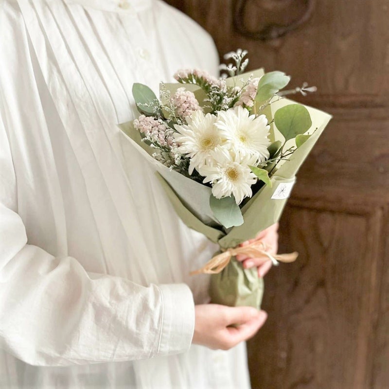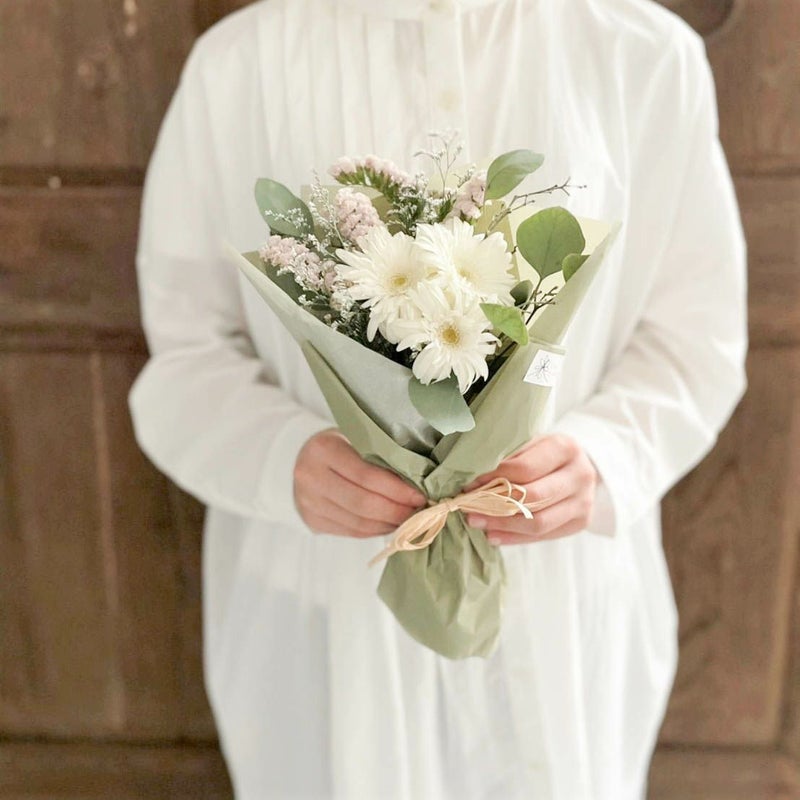 白いブーケはピュアな魅力があり、どんなお部屋にも合わせやすいです。