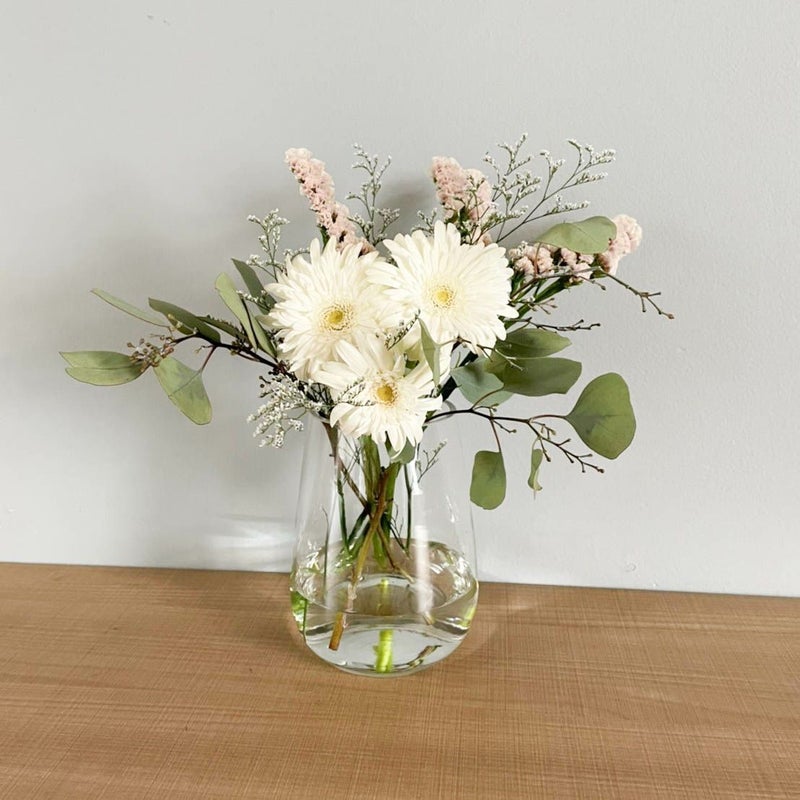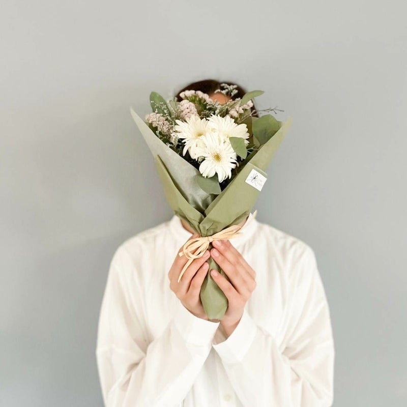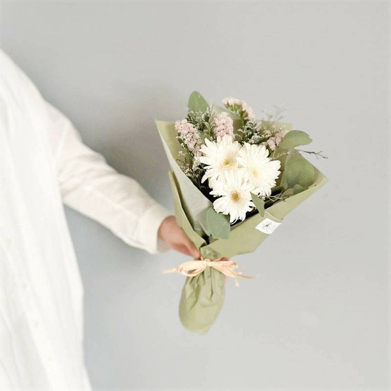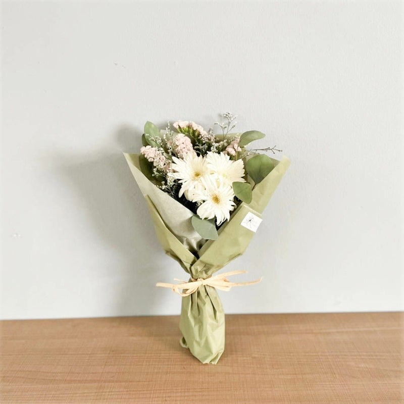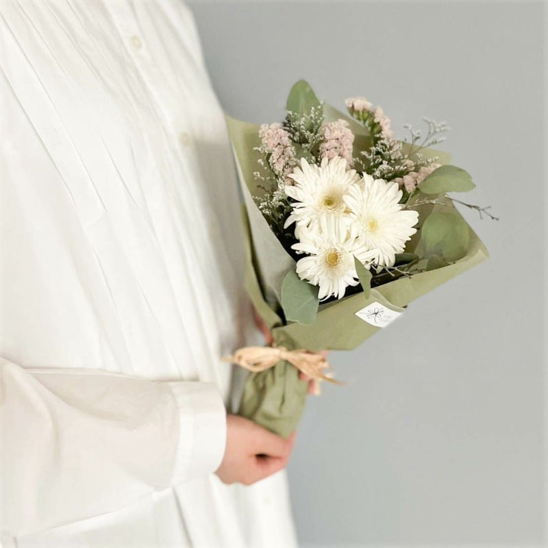 白いブーケはピュアな魅力があり、どんなお部屋にも合わせやすいです。
