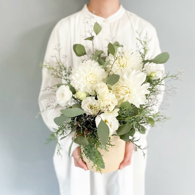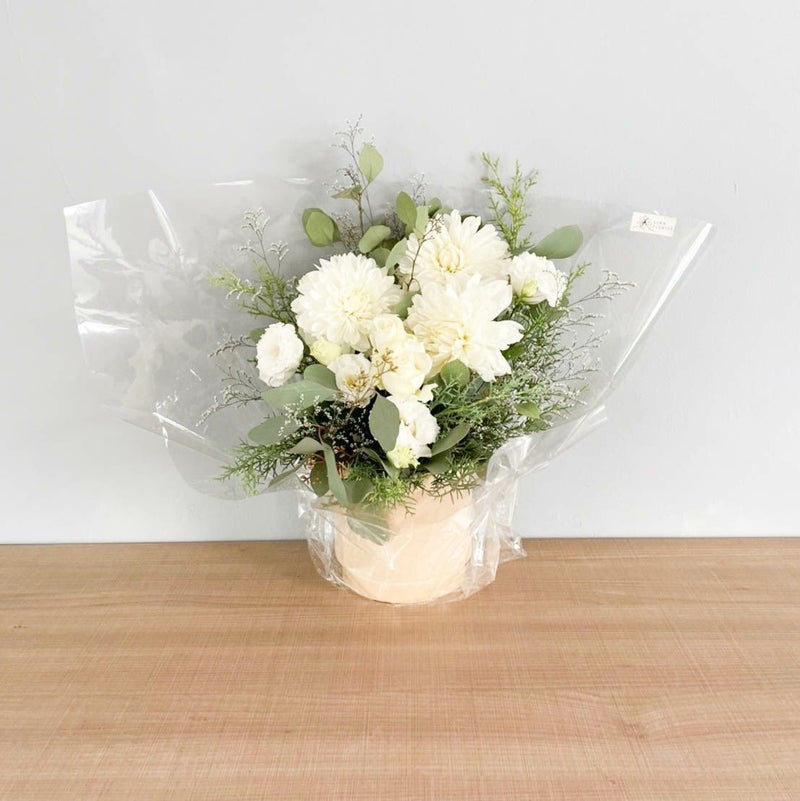 白いお花とグリーンのみのおつくりは