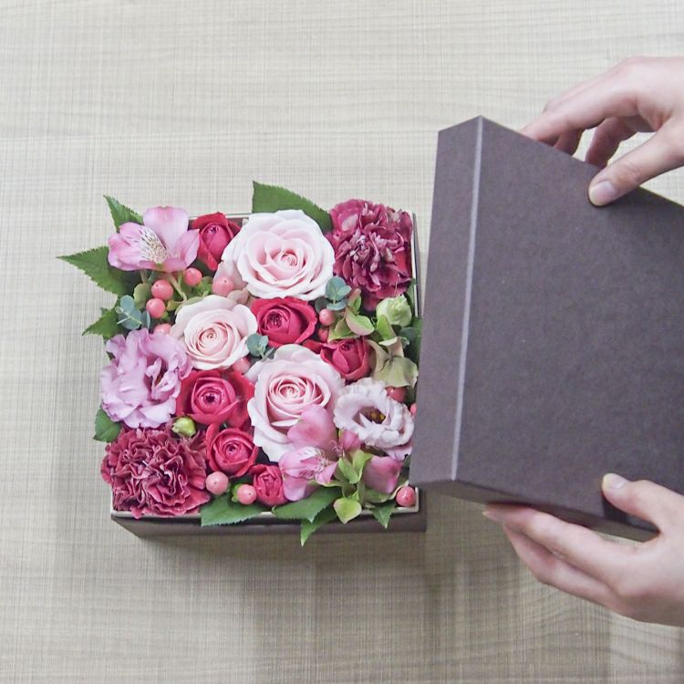 BOXはフタを閉めてお届けするので、お花が傷つくご心配なくお持ち運び頂けます。