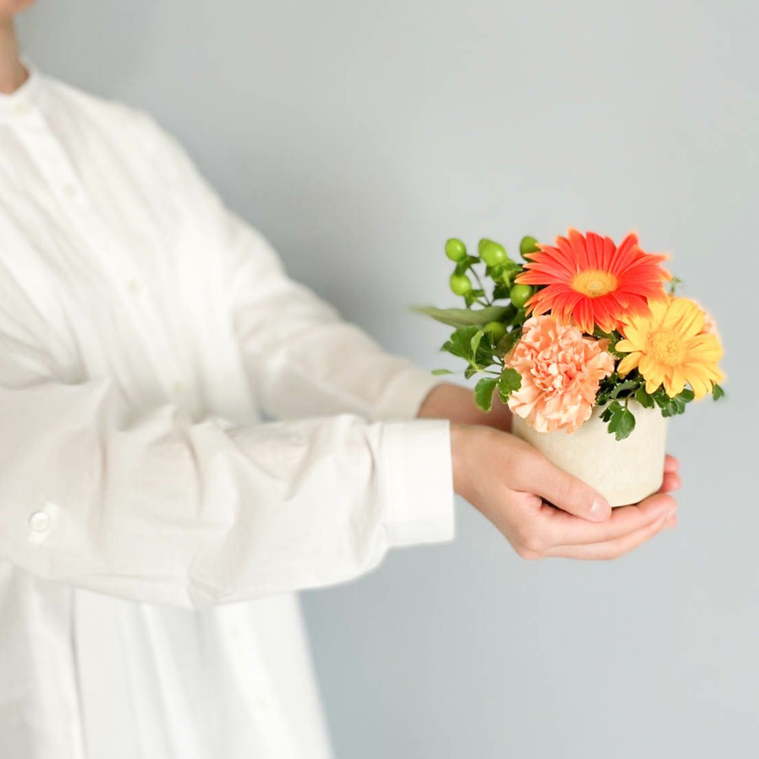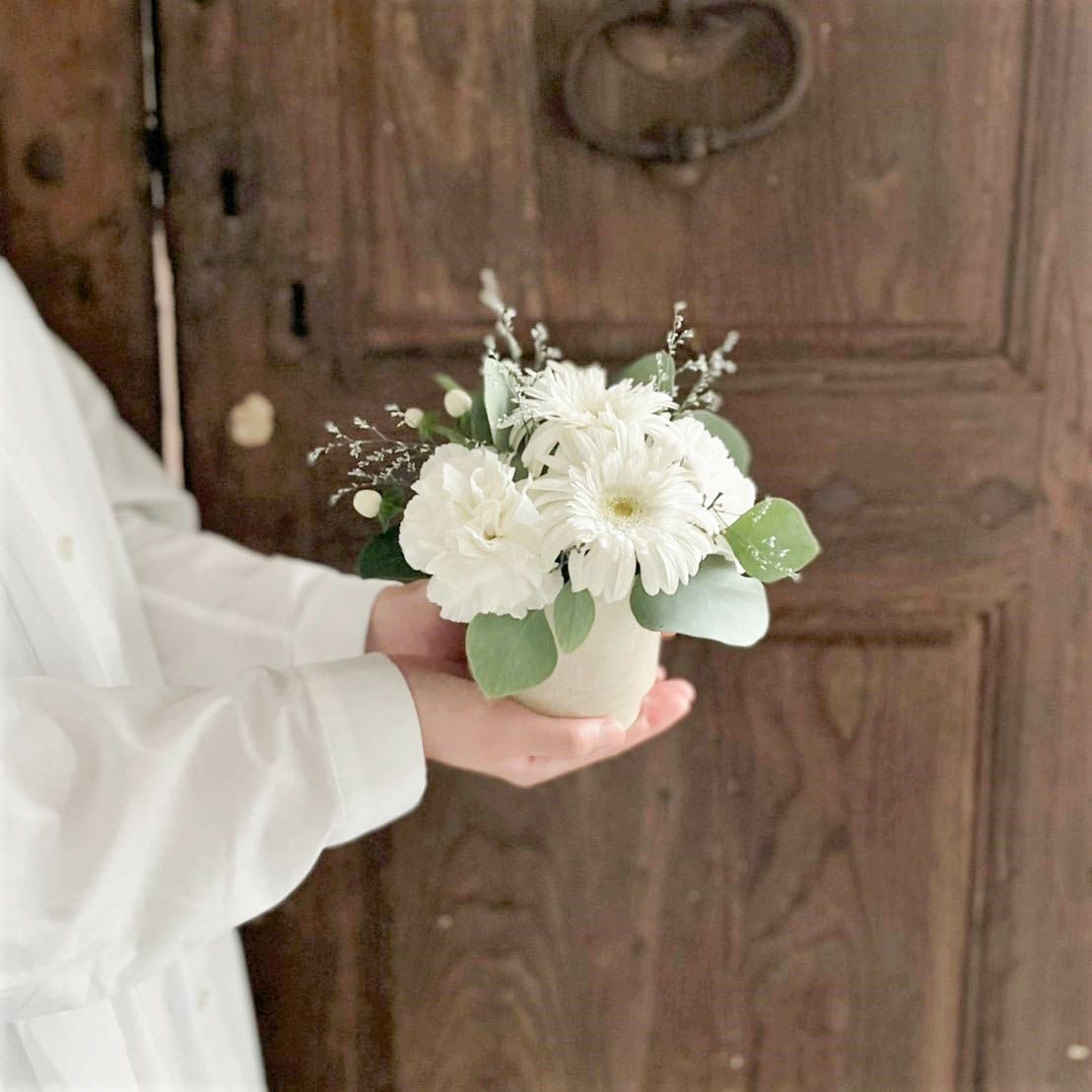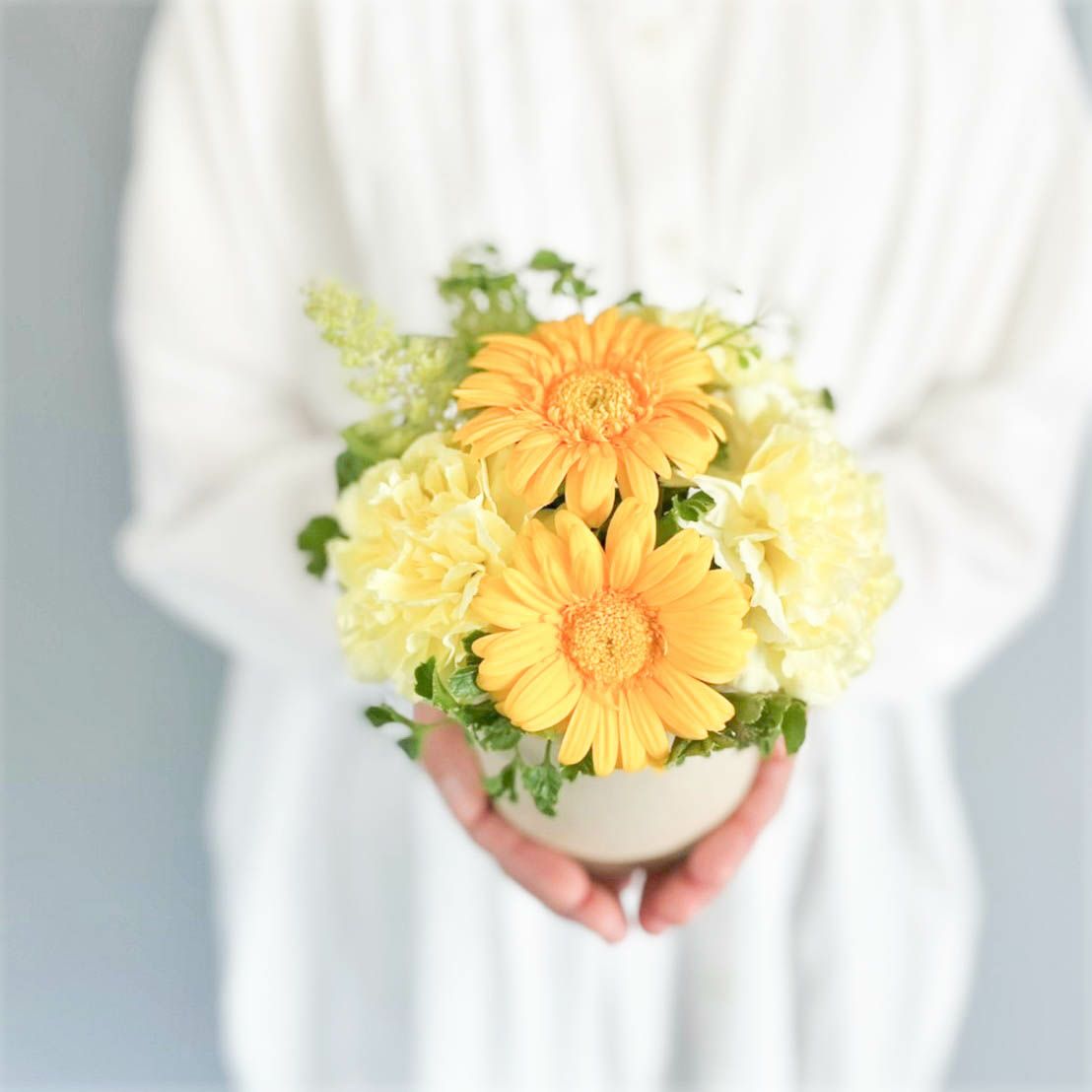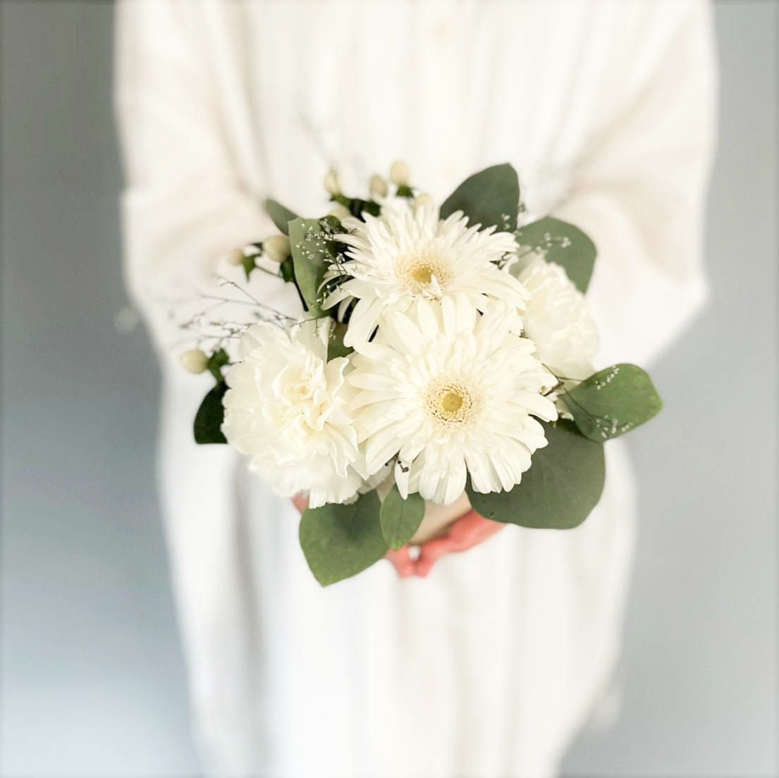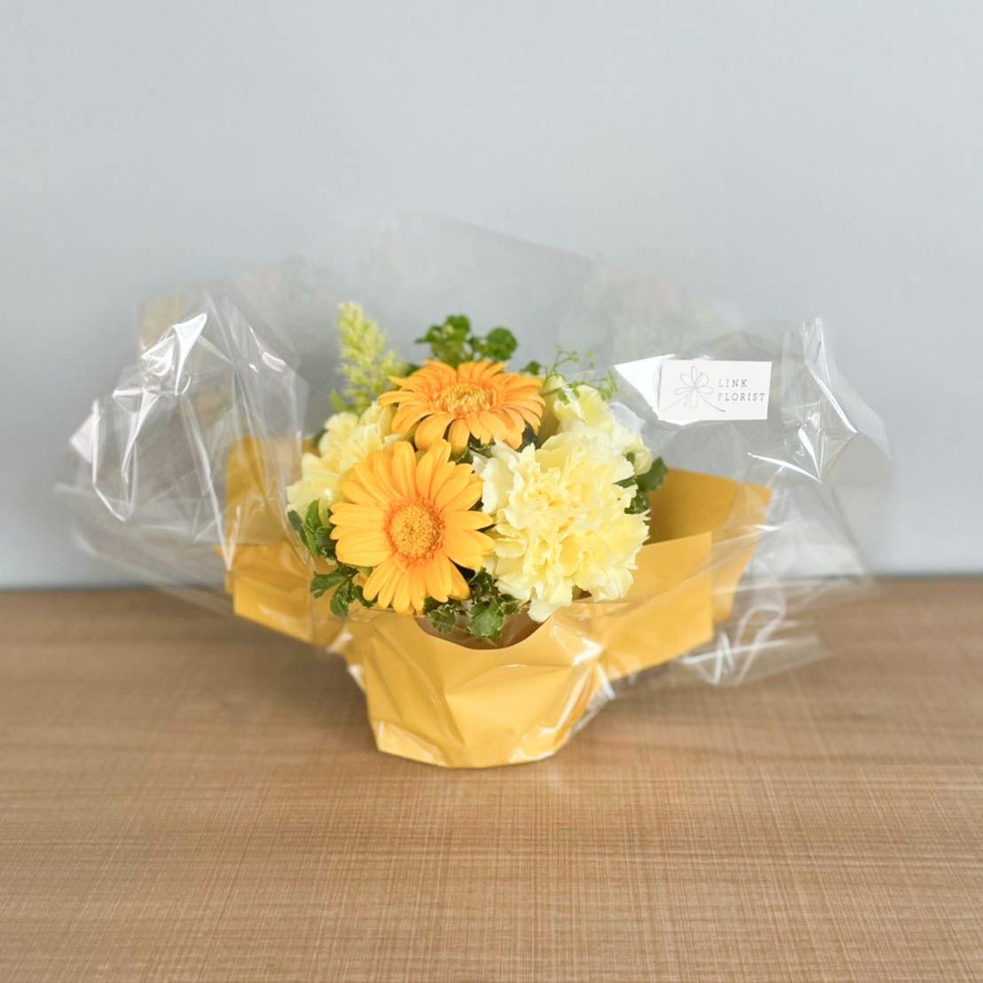 花束はラッピングしてお包みしたお花束を梱包しております。アレンジメントはセロハンで包装しております。ご到着の段ボールから取り出して、すぐにご利用頂ける状態になっております。
