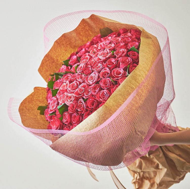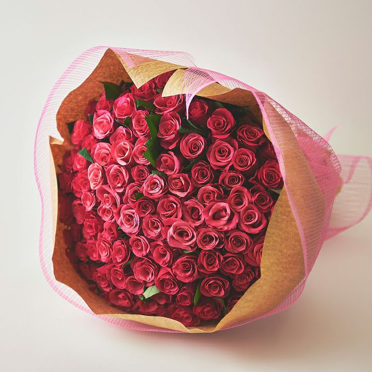 100本の薔薇の花束をプレゼントされるのを夢見る女性は多いのではないでしょうか?また「100%の愛」の花言葉は大切な方にあなたの愛を伝えるのにぴったりです。