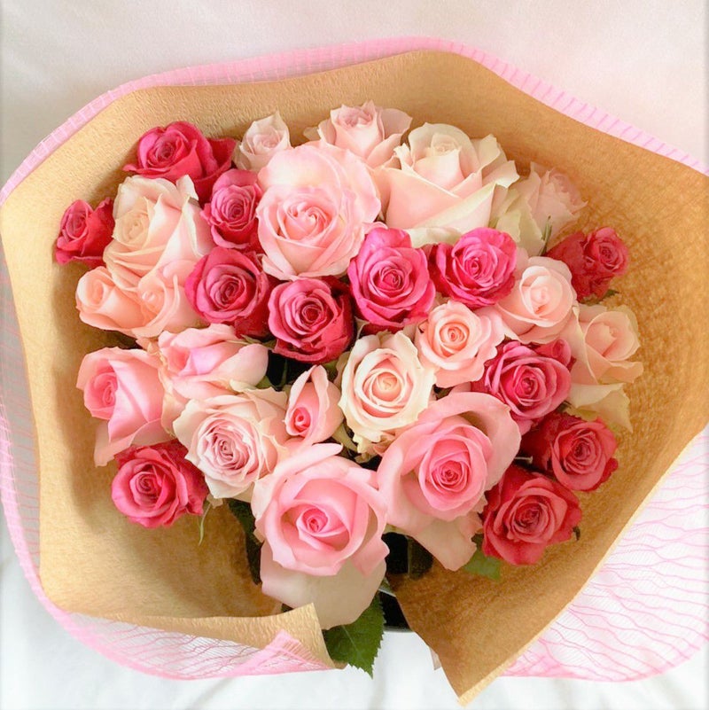 今年も誕生日のプレゼントに薔薇をお願いしました。本数が年々増えてきたので、今年はピンク系に変えました。真っ赤なバラもいいのですが、本数が多くなると強すぎて。新鮮で、生き生きとして、とても喜んでくれました。ありがとうございます。