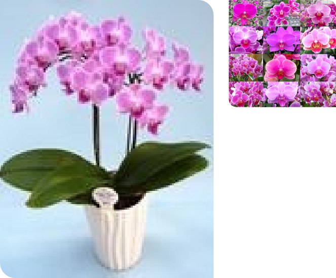 そんな想いのもと、胡蝶蘭の品種改良を手掛け10数年の年月を経てそれまでの胡蝶蘭(白大輪)とは違うコンパクトでありながらボリューム感もあり色鮮やかな「ミディ胡蝶蘭」という新しいスタイルを確立させた椎名洋ラン園。1995年にオリジナル品種である“リンリン”“ランラン”の販売が全国でスタートした後も様々な品種を世に出し、私達の目を楽しませてくれる椎名洋ラン園はミディ胡蝶蘭のパイオニア的存在です。
