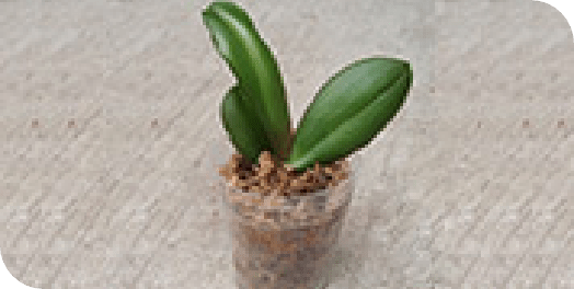 フラスコからポットに植え替えた苗。大きさは約5cm程