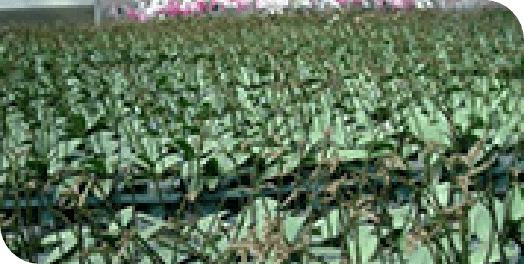 すずしいハウスに移されて約4~5ヶ月で開花が始まります。広いハウスの中一面のコチョウランは圧巻!!