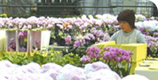 こうして大切に育てられたミディコチョウランは、ベテランスタッフの手によってきれいに仕立てられ、出荷されていきます。