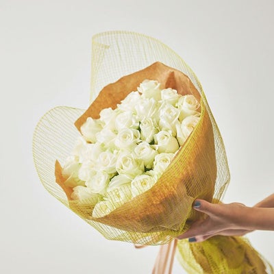 白薔薇を30本お願いしました。受け取った姪っ子は、産まれて初めての花束に喜んだそうです。写メを送って貰いましたが、ラッピングが私的には、納得がいくものではなかったですが、薔薇は最高に素敵でした。又、お願いしたいです。