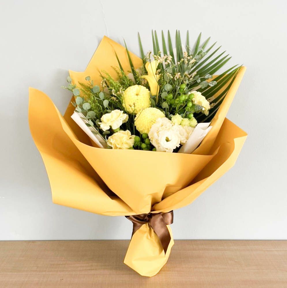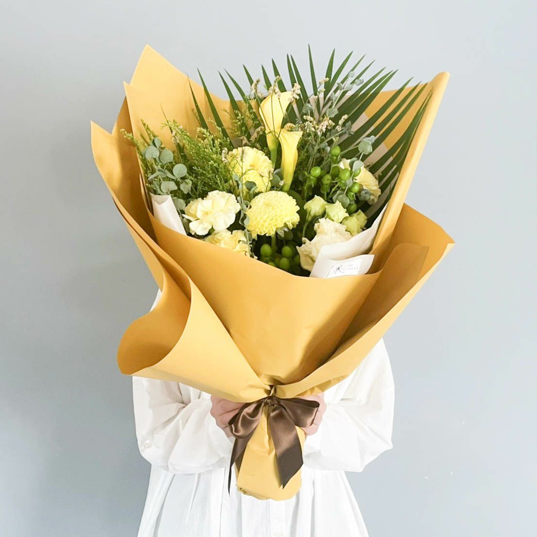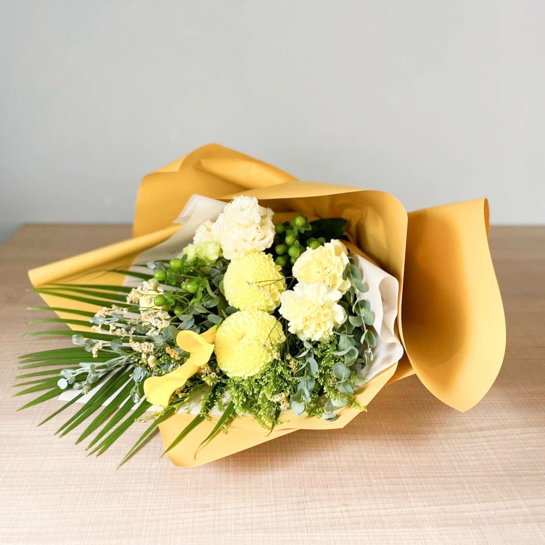 花束はラッピングしてお包みしたお花束を梱包しております。アレンジメントはセロハンで包装しております。ご到着の段ボールから取り出して、すぐにご利用頂ける状態になっております。